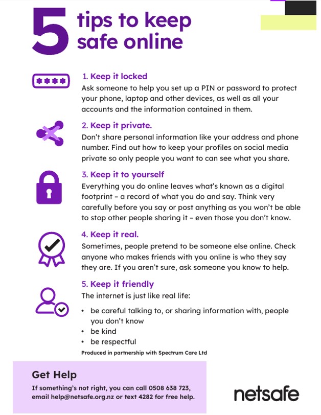 You can find out more information about staying safe online at this website: https://netsafe.org.nz/scams