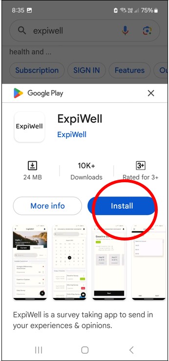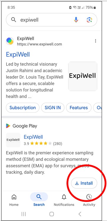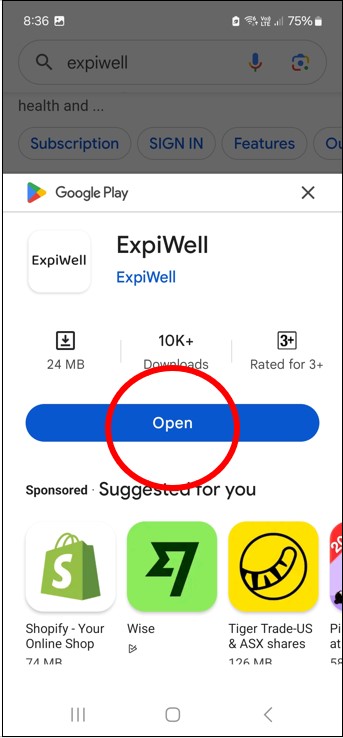 Step 2: Type “expiwell” into the search bar. The option to download the app is the second one.