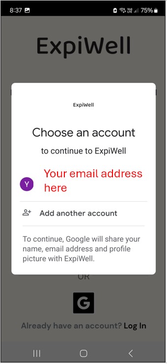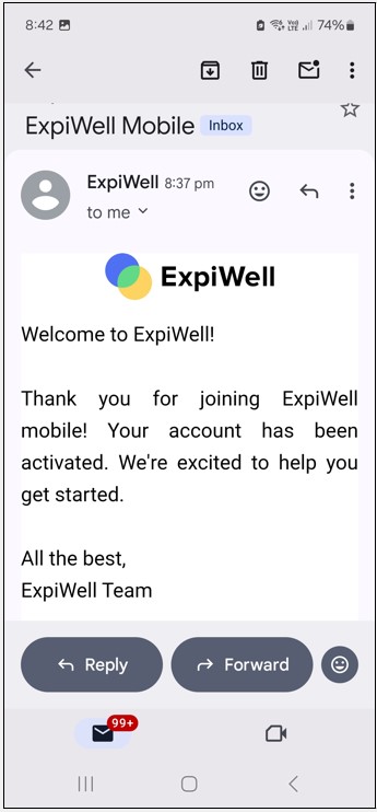 Step 7: Choose the email address you just used to create the account. You will now receive a confirmation email from ExpiWell welcoming you to the app.