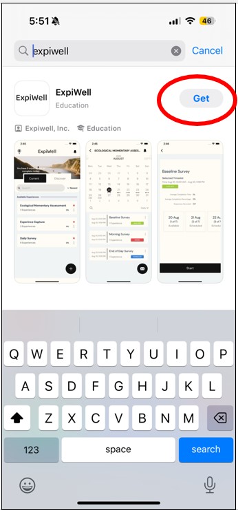Step 3: The ExpiWell app should now show as the first result. Press get.