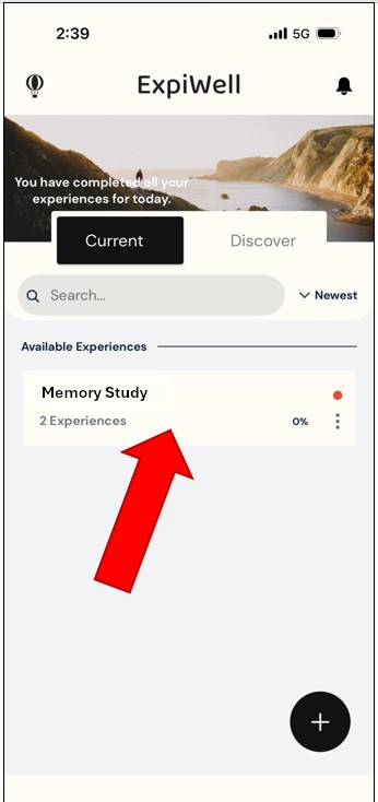 Please note that the app calls all tasks and parts of the study “experiences”.